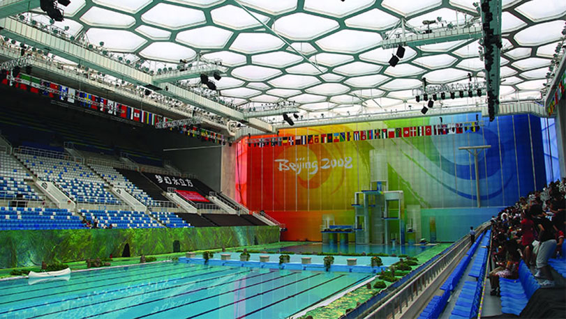國家游泳中心位于北京奧林匹克公園內(nèi),2008年北京奧運(yùn)會(huì)標(biāo)志性建筑物之一。2007年建設(shè),設(shè)計(jì)體現(xiàn)出“水立方”的設(shè)計(jì)理念,融建筑設(shè)計(jì)與結(jié)構(gòu)設(shè)計(jì)于一體,設(shè)計(jì)新穎,結(jié)構(gòu)獨(dú)特。
