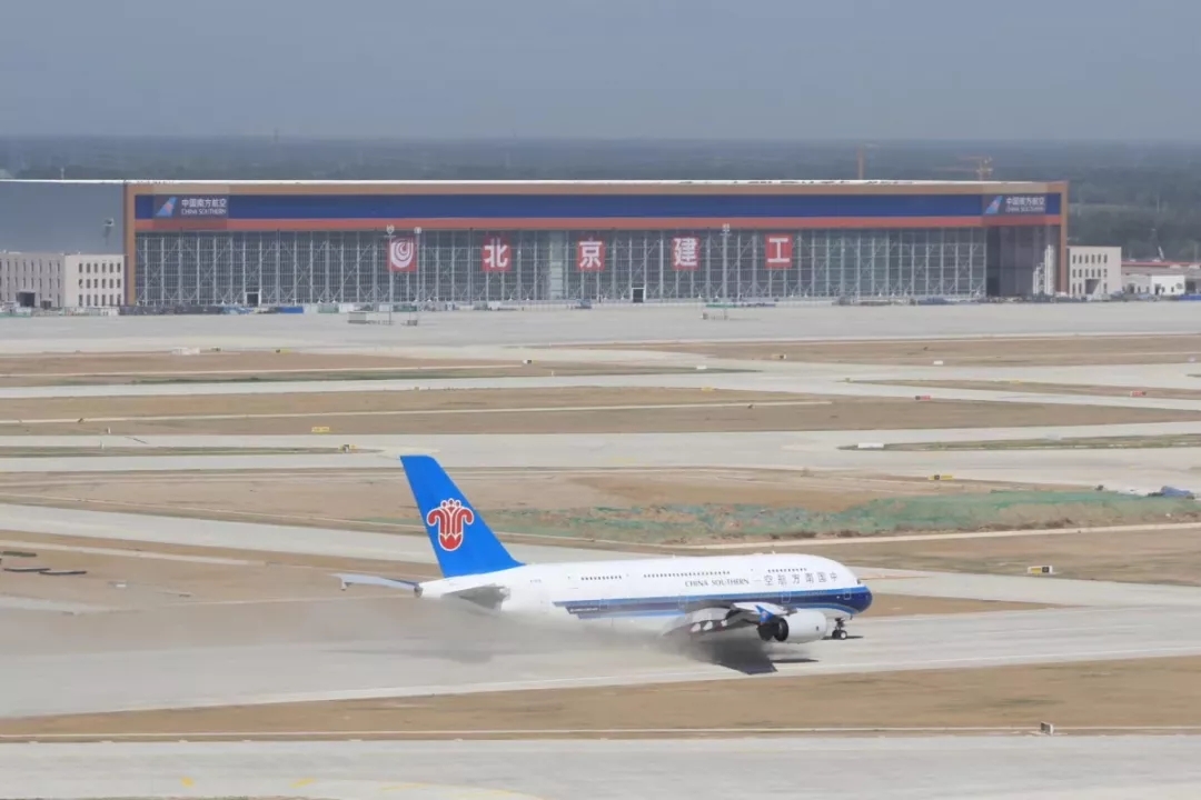 北京大興機(jī)場(chǎng)南航機(jī)庫(kù),總面積3.9萬(wàn)平米,鋼結(jié)構(gòu)屋架長(zhǎng)404.5米,跨度為世界最大,是北京新機(jī)場(chǎng)南航基地內(nèi)體量最大的單體工程,是亞洲最大的飛機(jī)維修庫(kù)。機(jī)庫(kù)共設(shè)5個(gè)寬體機(jī)機(jī)位和3個(gè)窄體機(jī)機(jī)位,最多可同時(shí)容納包括2架空客A380、3架波音777在內(nèi)的12架飛機(jī)停放維修。南航機(jī)庫(kù)工程的設(shè)計(jì)、采購(gòu)選材、施工建造全過(guò)程均體現(xiàn)出中國(guó)智慧、中國(guó)工藝,是100%的“中國(guó)建造”。