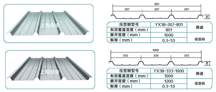 上海佰金彩鋼產品一覽表