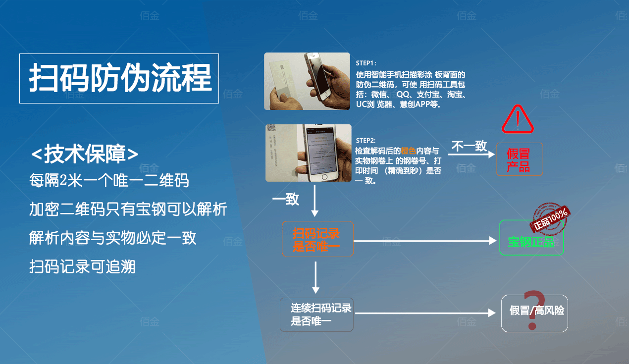 寶鋼彩涂板是目前國內很多重點工程的首選材料,廣大設計院和業主都積極推薦和選用寶鋼彩涂板。但是市場上出現了仿冒的寶鋼彩涂板,魚龍混雜,真假難辨,給用戶的辨別和使用帶來困惑,如何辨別真偽,是寶鋼和用戶共同關心和迫切需要解決的問題。